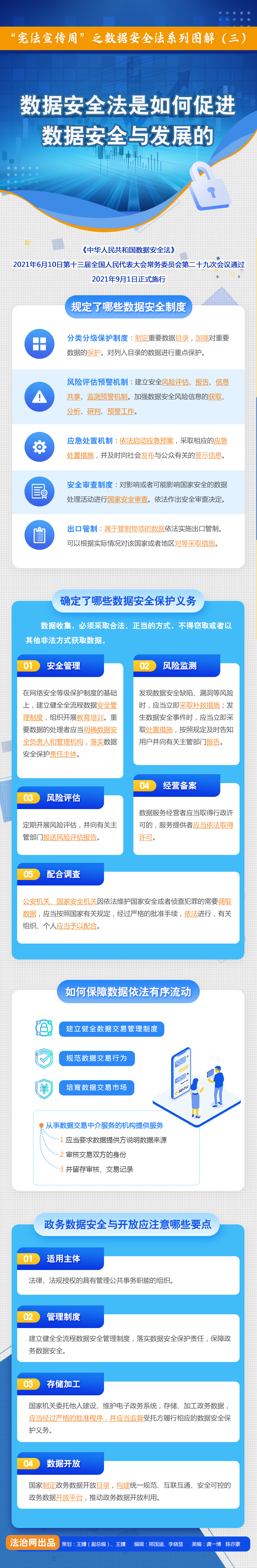 值此第四個“憲法宣傳周”之際,法治網(wǎng)將為您解讀今年9月1日起施行的《中華人民共和國數(shù)據(jù)安全法》——這部法律的亮點是什么?它是如何支持促進(jìn)數(shù)據(jù)安全與發(fā)展的?它又彰顯了哪些數(shù)據(jù)“溫度”?這一系列問題,都會在法治網(wǎng)《數(shù)據(jù)安全法圖解(系列)》中找到答案。