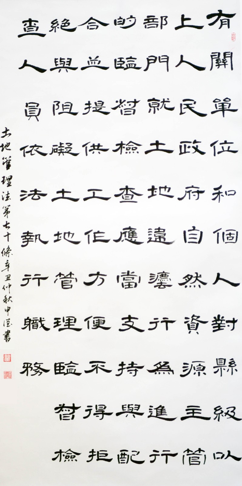 繼1600余位書法家參與書寫《中華人民共和國民法典》全部1260條法條之后,法治日報(bào)社聯(lián)合自然資源部法規(guī)司、自然資源部書畫研究會(huì)和北京昌平書法家協(xié)會(huì),將筆端對準(zhǔn)土地管理“一法一條例”,即《中華人民共和國土地管理法》和《中華人民共和國土地管理法實(shí)施條例》。