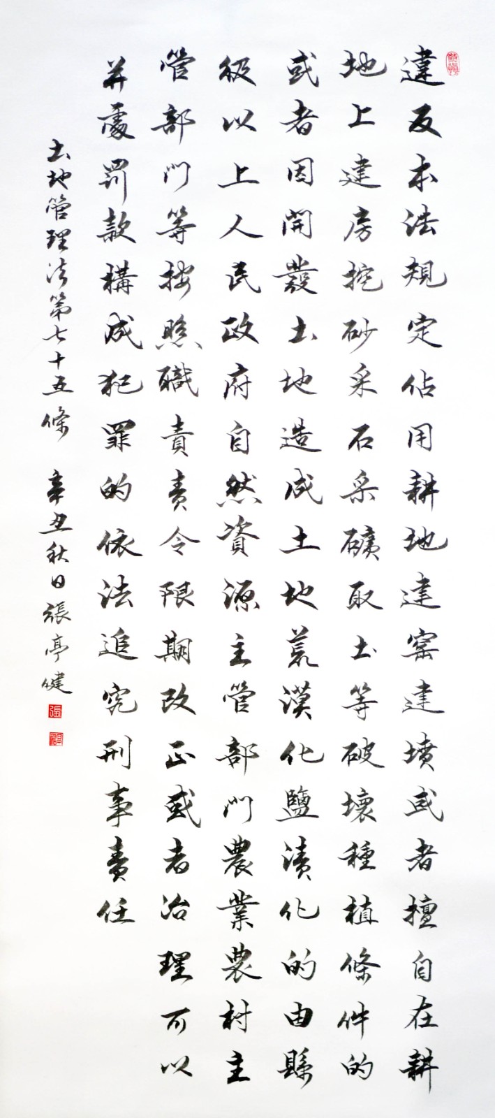 繼1600余位書法家參與書寫《中華人民共和國民法典》全部1260條法條之后,法治日報社聯(lián)合自然資源部法規(guī)司、自然資源部書畫研究會和北京昌平書法家協(xié)會,將筆端對準土地管理“一法一條例”,即《中華人民共和國土地管理法》和《中華人民共和國土地管理法實施條例》。
