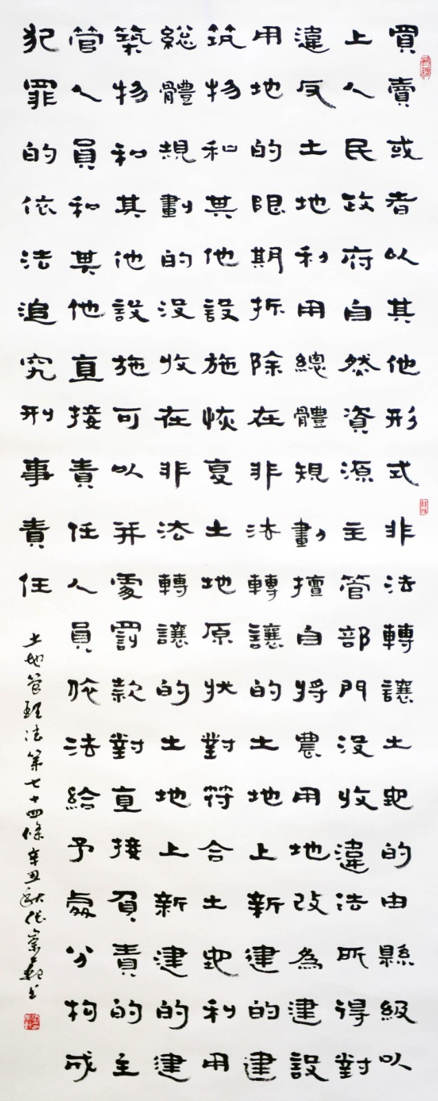 繼1600余位書法家參與書寫《中華人民共和國民法典》全部1260條法條之后,法治日報(bào)社聯(lián)合自然資源部法規(guī)司、自然資源部書畫研究會和北京昌平書法家協(xié)會,將筆端對準(zhǔn)土地管理“一法一條例”,即《中華人民共和國土地管理法》和《中華人民共和國土地管理法實(shí)施條例》。