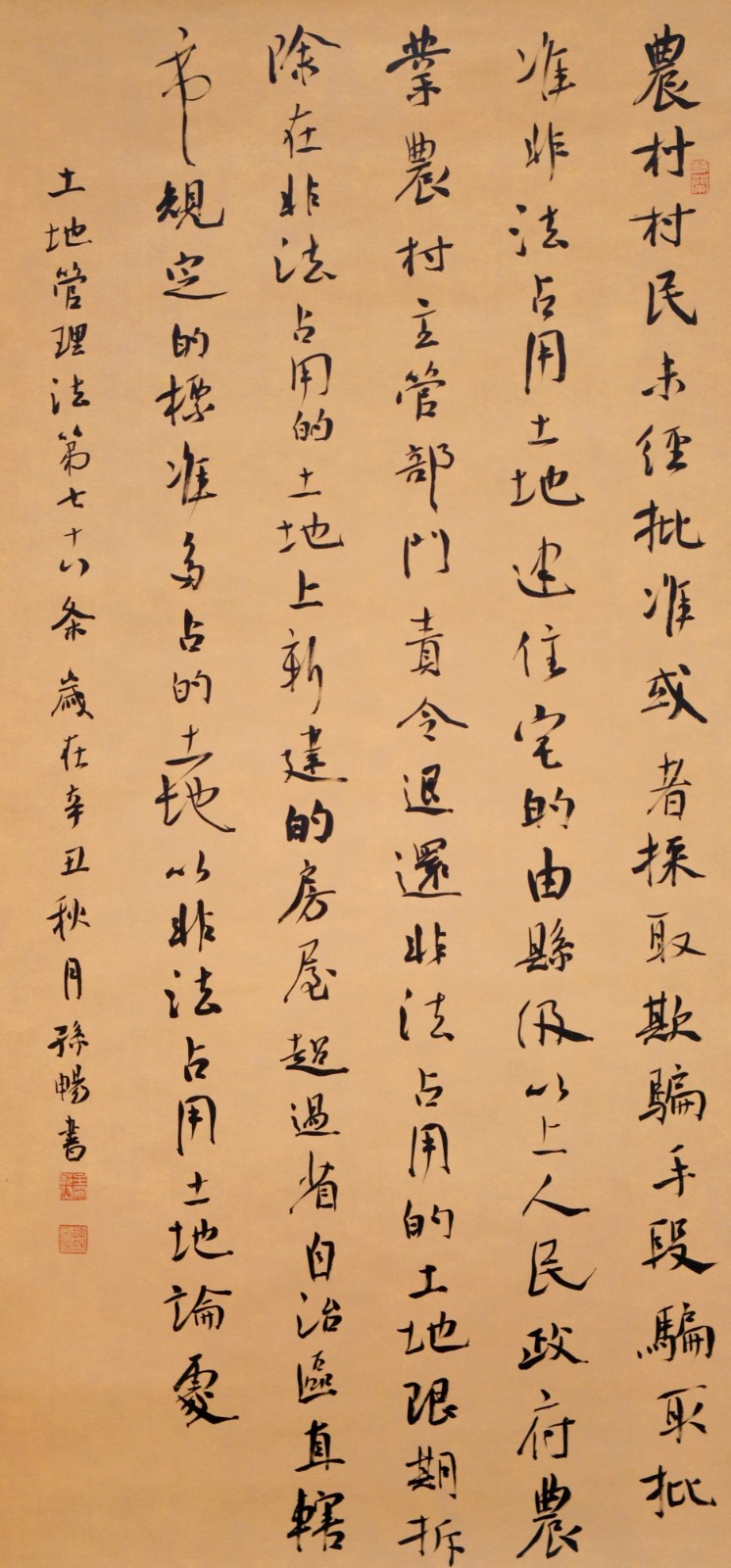 繼1600余位書(shū)法家參與書(shū)寫(xiě)《中華人民共和國(guó)民法典》全部1260條法條之后,法治日?qǐng)?bào)社聯(lián)合自然資源部法規(guī)司、自然資源部書(shū)畫(huà)研究會(huì)和北京昌平書(shū)法家協(xié)會(huì),將筆端對(duì)準(zhǔn)土地管理“一法一條例”,即《中華人民共和國(guó)土地管理法》和《中華人民共和國(guó)土地管理法實(shí)施條例》。