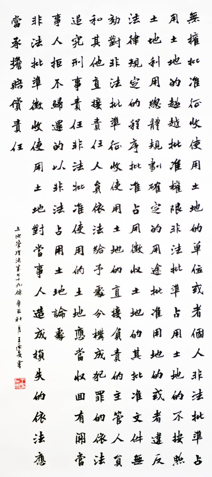 繼1600余位書(shū)法家參與書(shū)寫(xiě)《中華人民共和國(guó)民法典》全部1260條法條之后,法治日?qǐng)?bào)社聯(lián)合自然資源部法規(guī)司、自然資源部書(shū)畫(huà)研究會(huì)和北京昌平書(shū)法家協(xié)會(huì),將筆端對(duì)準(zhǔn)土地管理“一法一條例”,即《中華人民共和國(guó)土地管理法》和《中華人民共和國(guó)土地管理法實(shí)施條例》。