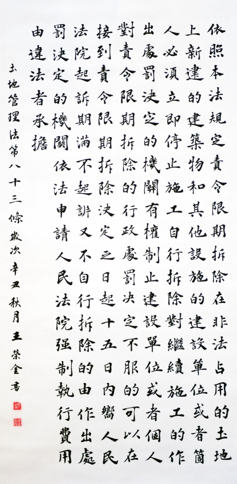 繼1600余位書法家參與書寫《中華人民共和國(guó)民法典》全部1260條法條之后,法治日?qǐng)?bào)社聯(lián)合自然資源部法規(guī)司、自然資源部書畫研究會(huì)和北京昌平書法家協(xié)會(huì),將筆端對(duì)準(zhǔn)土地管理“一法一條例”,即《中華人民共和國(guó)土地管理法》和《中華人民共和國(guó)土地管理法實(shí)施條例》。
