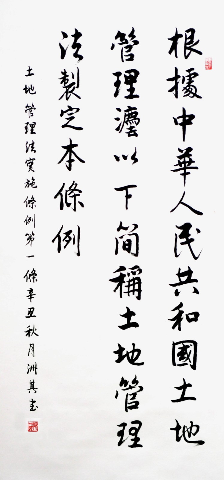 繼1600余位書法家參與書寫《中華人民共和國(guó)民法典》全部1260條法條之后,法治日?qǐng)?bào)社聯(lián)合自然資源部法規(guī)司、自然資源部書畫研究會(huì)和北京昌平書法家協(xié)會(huì),將筆端對(duì)準(zhǔn)土地管理“一法一條例”,即《中華人民共和國(guó)土地管理法》和《中華人民共和國(guó)土地管理法實(shí)施條例》。