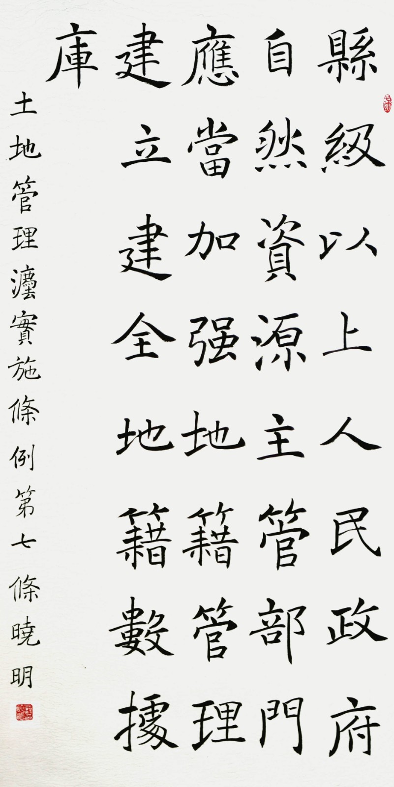繼1600余位書法家參與書寫《中華人民共和國民法典》全部1260條法條之后,法治日報社聯(lián)合自然資源部法規(guī)司、自然資源部書畫研究會和北京昌平書法家協(xié)會,將筆端對準土地管理“一法一條例”,即《中華人民共和國土地管理法》和《中華人民共和國土地管理法實施條例》。