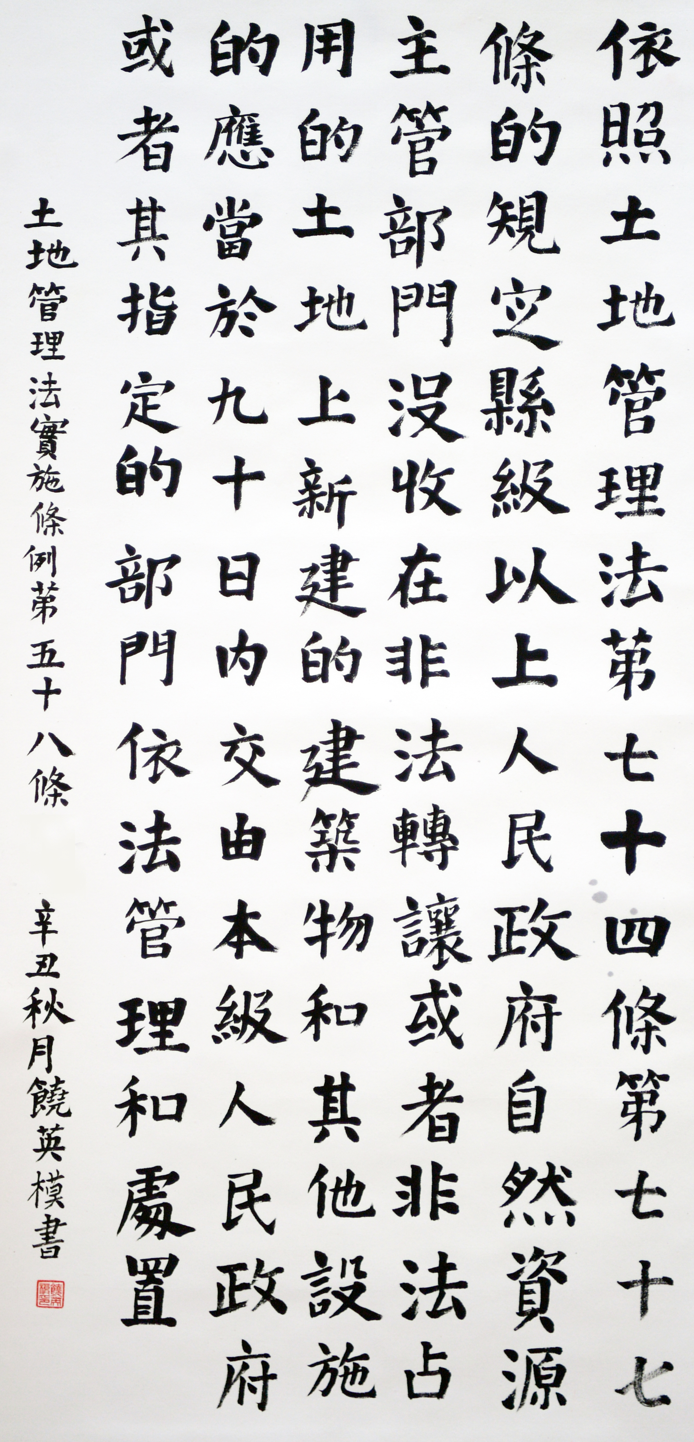 繼1600余位書(shū)法家參與書(shū)寫(xiě)《中華人民共和國(guó)民法典》全部1260條法條之后,法治日?qǐng)?bào)社聯(lián)合自然資源部法規(guī)司、自然資源部書(shū)畫(huà)研究會(huì)和北京昌平書(shū)法家協(xié)會(huì),將筆端對(duì)準(zhǔn)土地管理“一法一條例”,即《中華人民共和國(guó)土地管理法》和《中華人民共和國(guó)土地管理法實(shí)施條例》。
