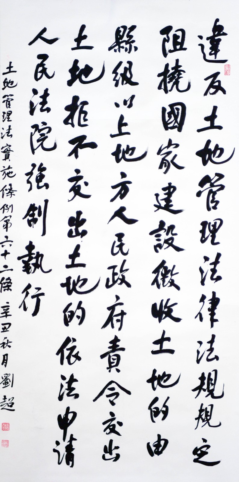 繼1600余位書法家參與書寫《中華人民共和國民法典》全部1260條法條之后,法治日報社聯(lián)合自然資源部法規(guī)司、自然資源部書畫研究會和北京昌平書法家協(xié)會,將筆端對準(zhǔn)土地管理“一法一條例”,即《中華人民共和國土地管理法》和《中華人民共和國土地管理法實施條例》。