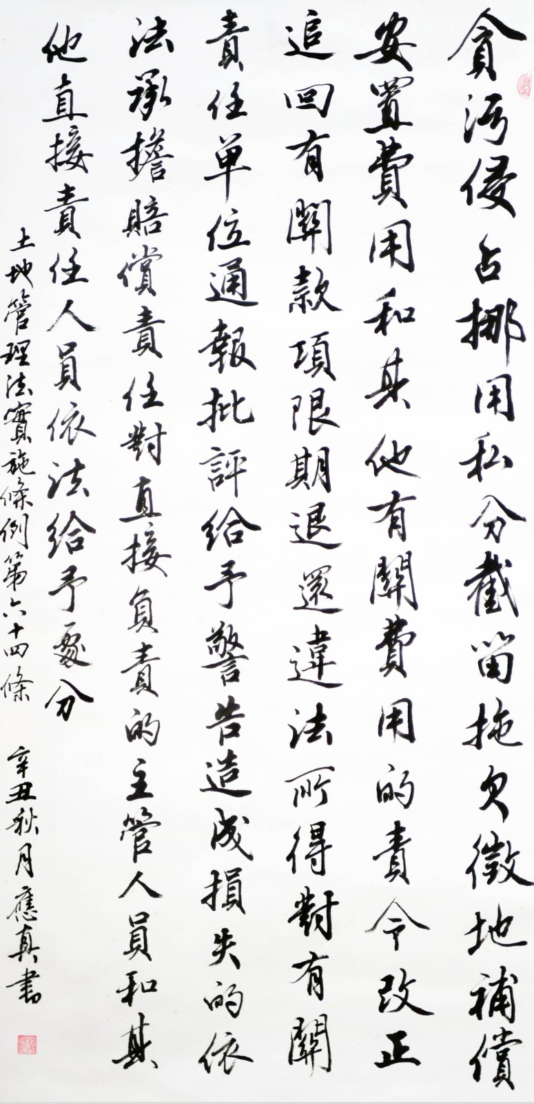 繼1600余位書法家參與書寫《中華人民共和國民法典》全部1260條法條之后,法治日報社聯(lián)合自然資源部法規(guī)司、自然資源部書畫研究會和北京昌平書法家協(xié)會,將筆端對準(zhǔn)土地管理“一法一條例”,即《中華人民共和國土地管理法》和《中華人民共和國土地管理法實施條例》。