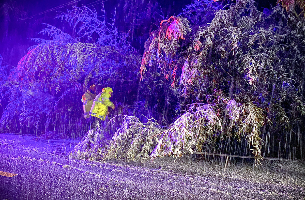 1月28日晚,安徽省涇縣境內(nèi)大雪紛飛,為減少雨雪冰凍惡劣天氣帶來的影響,涇縣公安局交通管理大隊(duì)全警上路,沿轄區(qū)國省道、鄉(xiāng)村道路開展道路巡邏管控,清理路面障礙物,樹立警示提示牌提醒過往車輛注意行車安全,全力保障轄區(qū)道路安全通暢,人民群眾的出行安全。