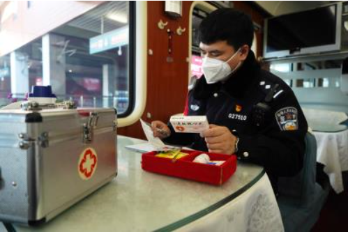 “我愛人有點(diǎn)暈車,警察同志,你那有暈車藥嗎?”一名旅客的妻子因旅途勞累身感不適。
