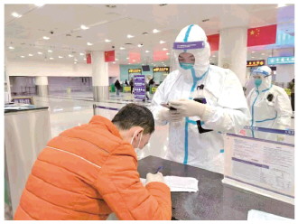 “手套、鞋套、面屏、連接處封死……”1月25日9點(diǎn)半,遼寧大連周水子出入境邊防檢查站執(zhí)勤四隊(duì)教導(dǎo)員常亮嘴里一邊嘟囔著,一邊穿上防護(hù)服。由于接下來(lái)的幾個(gè)小時(shí)需要穿防護(hù)服執(zhí)勤,他把早飯和午飯合在了一起吃,盡量少喝水,然后從專用通道走出隔離酒店,乘車前往執(zhí)勤現(xiàn)場(chǎng),第四次參加閉環(huán)勤務(wù)。