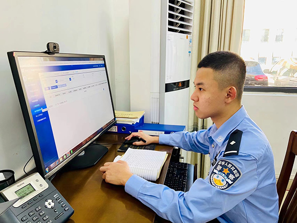 圖為春節(jié)期間值班民警廖寶承正在排查涉疫數(shù)據(jù) 黃海城 攝