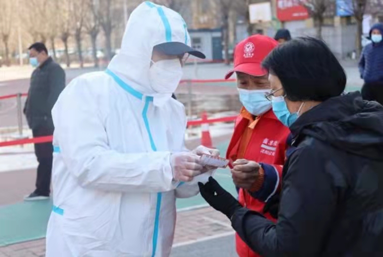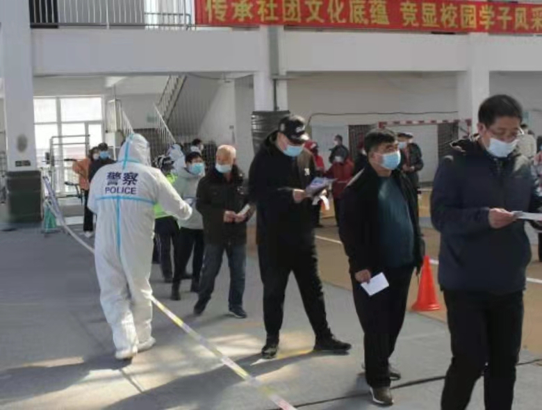 “請帶好口罩,保持一米距離,準(zhǔn)備好健康碼?!?月17日上午,在虹橋中學(xué)核酸檢測點(diǎn),一個(gè)背后貼有“公安”字樣的“大白”,向著陸陸續(xù)續(xù)前來排隊(duì)的居民不停地重復(fù)著這句話。他叫寧可新,是皇姑分局塔灣派出所的一名輔警。今天清晨,他與其他執(zhí)勤警力在這里維持現(xiàn)場秩序?!坝捎跈z測速度很快,盡管群眾隊(duì)伍很長,但幾分鐘就能檢測上,所以得不停地提示大家,外面隊(duì)伍排得越好,準(zhǔn)備得越充分,里面檢測速度就越快?!眲傉f完這幾句,寧可新便又走到隊(duì)伍排尾,對剛來排隊(duì)的群眾進(jìn)行提醒,并耐心解答著與檢測相關(guān)的問題。初春的風(fēng)依舊寒冷刺骨,可在執(zhí)勤現(xiàn)場忙前忙后的民警輔警們卻沒有絲毫退縮和怨言。