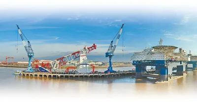大型海工裝備“藍(lán)鯨一號”正在山東煙臺進(jìn)行維護(hù)保養(yǎng)。