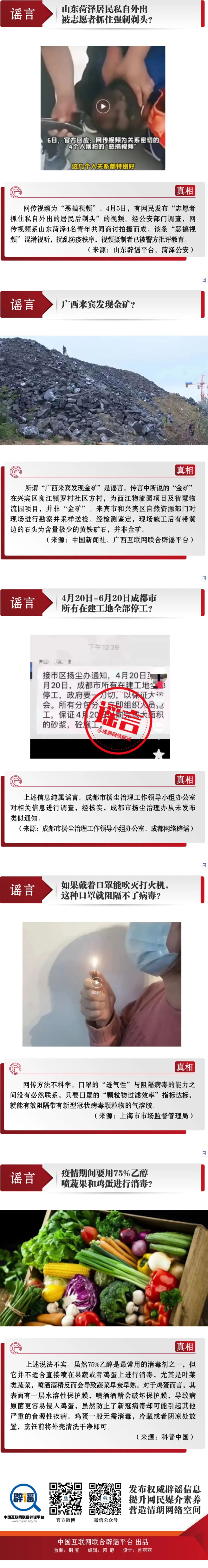 打擊網(wǎng)絡(luò)謠言 共建清朗家園 中國互聯(lián)網(wǎng)聯(lián)合辟謠平臺4月辟謠榜