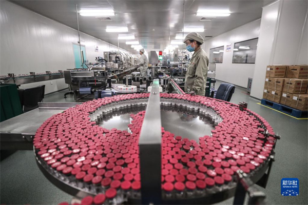 東北制藥集團(tuán)股份有限公司工作人員在生產(chǎn)車(chē)間工作(2022年5月2日攝)。 新華社記者 潘昱龍 攝