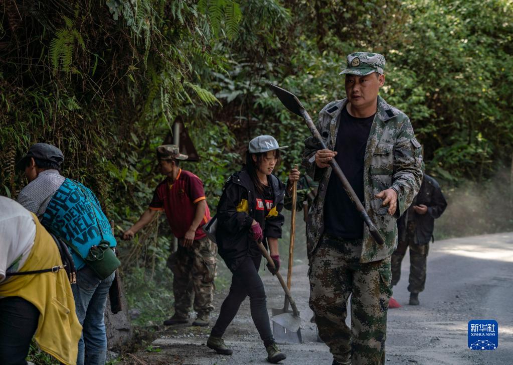 在云南省貢山縣獨龍江鄉(xiāng)巴坡村,王世榮(右一)帶領(lǐng)鄉(xiāng)親們一起勞動(2019年4月25日攝)。新華社記者 江文耀 攝