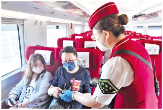 “我們會為兒童提供兒童讀物,為哺乳期婦女提供私密空間,對單獨乘車的老人、盲人以及行動不便的旅客進(jìn)行重點服務(wù),介紹車內(nèi)安全注意事項,幫助旅客解決實際困難,指引去衛(wèi)生間,送水送飯,與站臺值班員辦理交接,方便出站,用實際行動護(hù)送旅客平安出行?!闭f起服務(wù)內(nèi)容,盧雅靜滔滔不絕。
