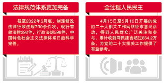 4月15日至5月16日開展的黨的二十大相關(guān)工作網(wǎng)絡(luò)征求意見活動,得到人民群眾廣泛關(guān)注和參與,累計收到網(wǎng)民建言超過854.2萬條,為黨的二十大相關(guān)工作提供了有益參考——這是全黨全社會為國家發(fā)展、民族復(fù)興獻計獻策的一種有效方式,也是全過程人民民主的生動體現(xiàn)。