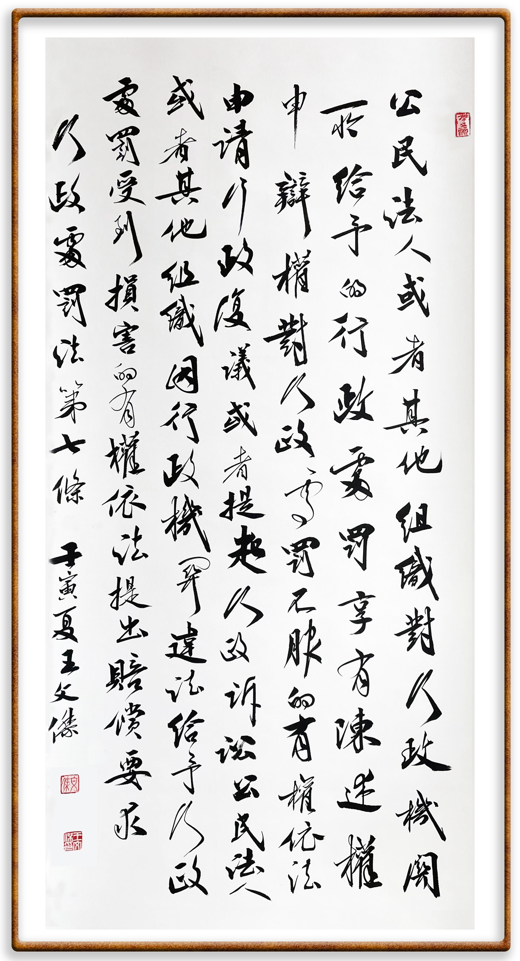 繼《中華人民共和國(guó)民法典》《中華人民共和國(guó)土地管理法》《中華人民共和國(guó)土地管理法實(shí)施條例》《中華人民共和國(guó)法律援助法》之后,法治日?qǐng)?bào)社聯(lián)合北京市司法局、北京市書(shū)法家協(xié)會(huì),將筆端對(duì)準(zhǔn)《中華人民共和國(guó)憲法》和《中華人民共和國(guó)行政處罰法》。
