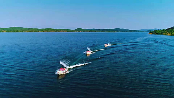 圖為近日,密云水庫綜合執(zhí)法大隊在水面上巡查。