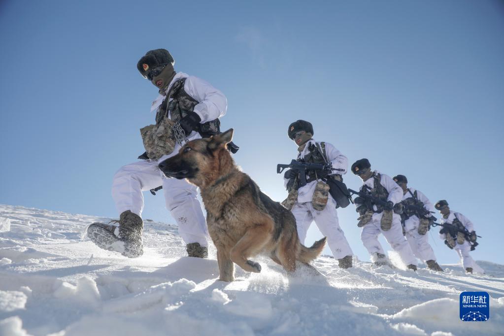 駐守帕米爾高原的新疆喀什軍分區(qū)某邊防團(tuán)托克滿蘇邊防連官兵按計(jì)劃對海拔5100米的山口實(shí)施例行巡邏(2021年2月11日攝)。新華社發(fā)(姬文志 攝)