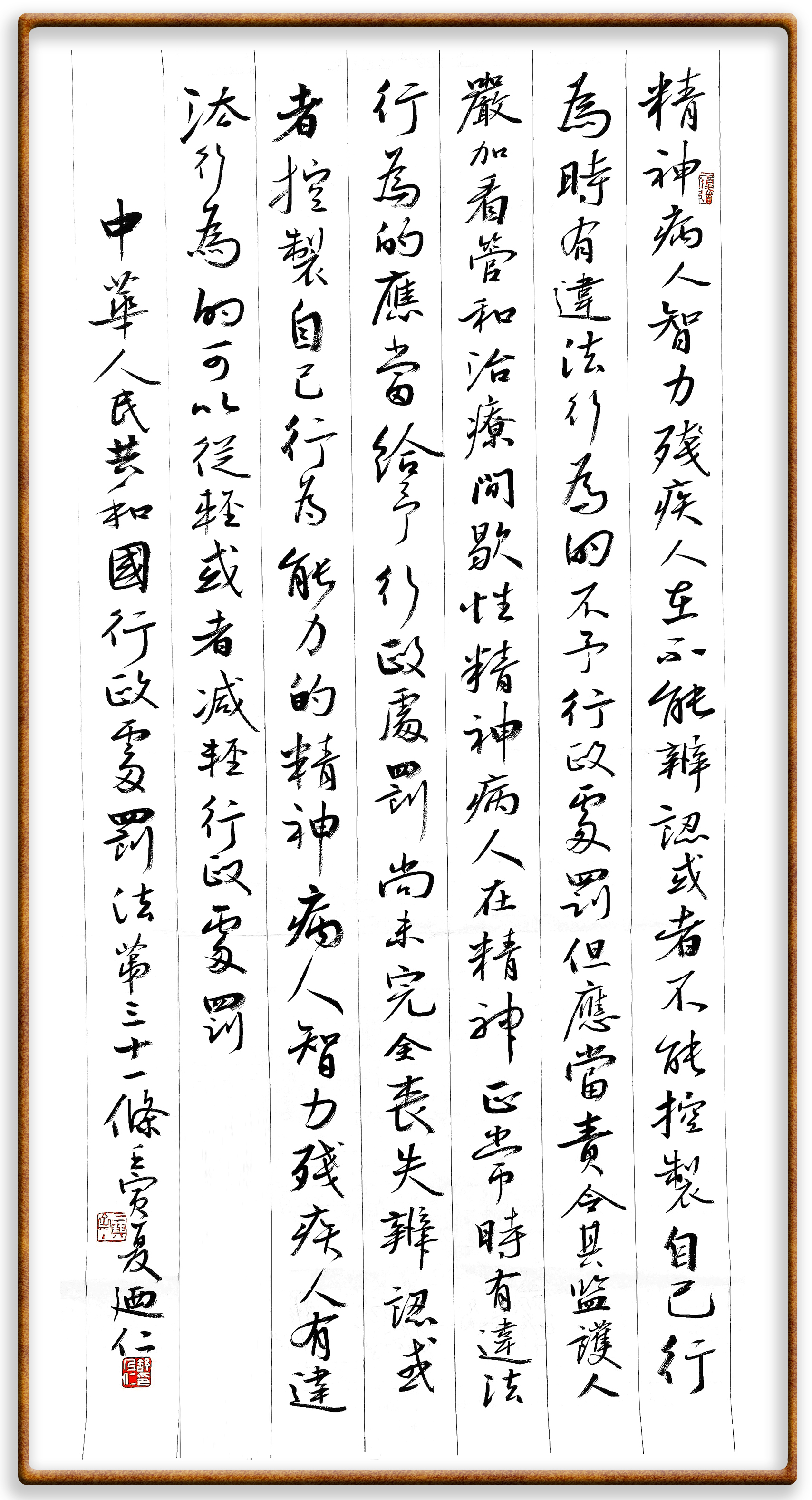 繼《中華人民共和國民法典》《中華人民共和國土地管理法》《中華人民共和國土地管理法實施條例》《中華人民共和國法律援助法》之后,法治日報社聯(lián)合北京市司法局、北京市書法家協(xié)會,將筆端對準(zhǔn)《中華人民共和國憲法》和《中華人民共和國行政處罰法》。
