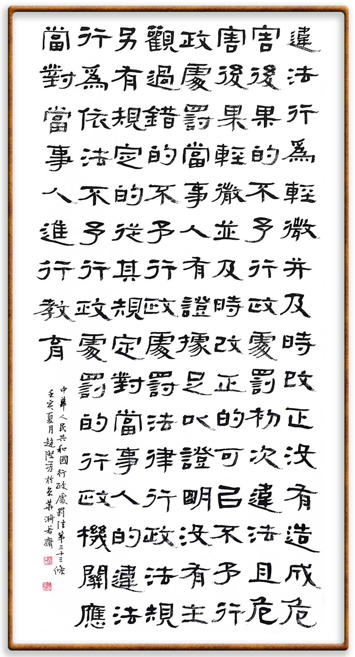 繼《中華人民共和國民法典》《中華人民共和國土地管理法》《中華人民共和國土地管理法實施條例》《中華人民共和國法律援助法》之后,法治日報社聯(lián)合北京市司法局、北京市書法家協(xié)會,將筆端對準(zhǔn)《中華人民共和國憲法》和《中華人民共和國行政處罰法》。