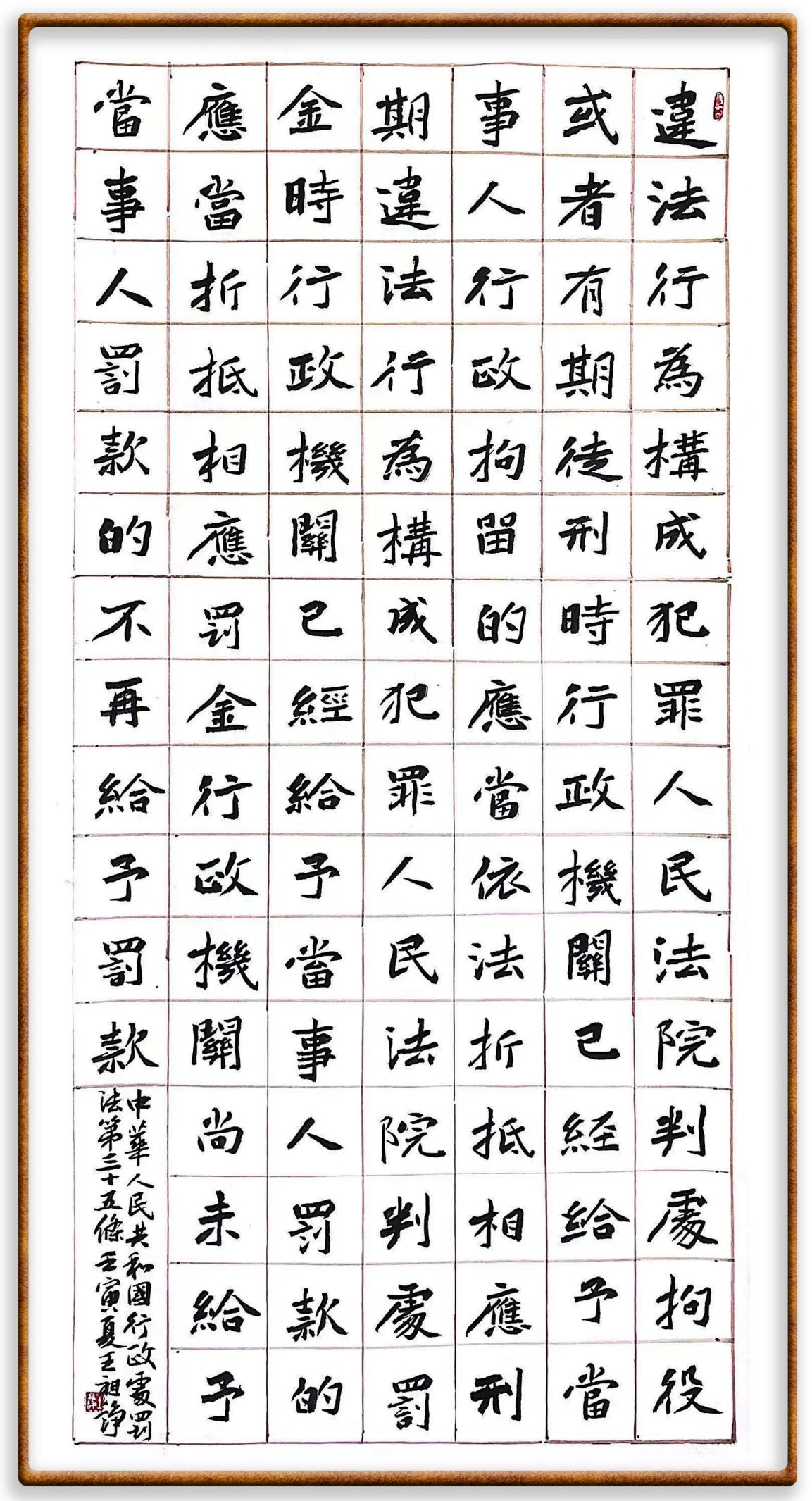 繼《中華人民共和國民法典》《中華人民共和國土地管理法》《中華人民共和國土地管理法實施條例》《中華人民共和國法律援助法》之后,法治日報社聯(lián)合北京市司法局、北京市書法家協(xié)會,將筆端對準(zhǔn)《中華人民共和國憲法》和《中華人民共和國行政處罰法》。