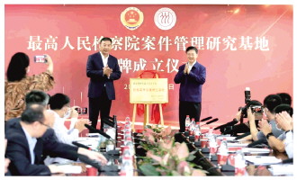 本報(bào)訊 記者蔣安杰 日前,最高人民檢察院檢察案件管理研究基地揭牌成立儀式在中國人民大學(xué)舉行。最高人民檢察院黨組副書記、常務(wù)副檢察長童建明與中國人民大學(xué)黨委書記張東剛分別為檢察案件管理研究基地的成立致辭,并共同為基地揭牌。