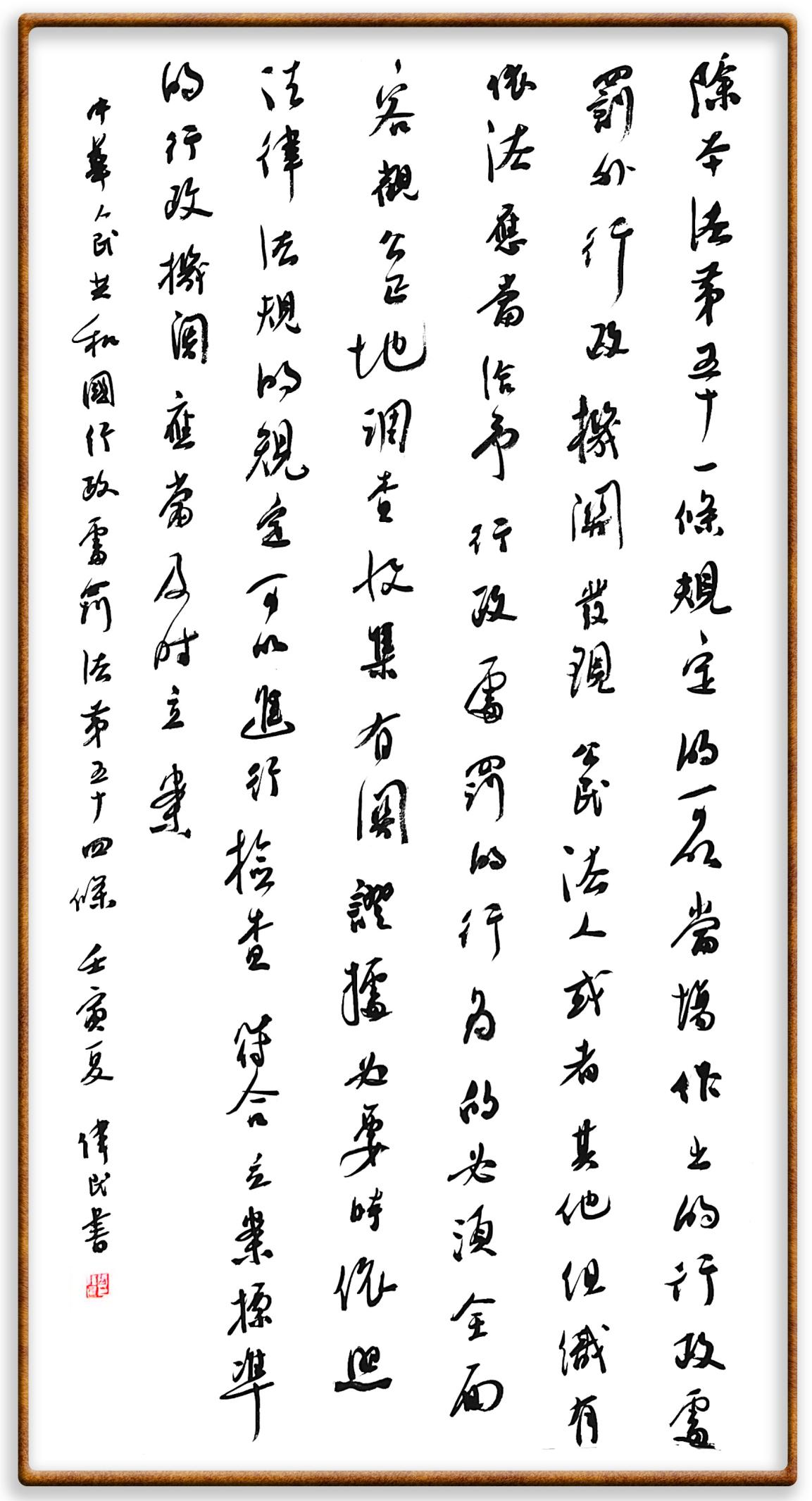 繼《中華人民共和國民法典》《中華人民共和國土地管理法》《中華人民共和國土地管理法實施條例》《中華人民共和國法律援助法》之后,法治日報社聯(lián)合北京市司法局、北京書法家協(xié)會,將筆端對準《中華人民共和國憲法》和《中華人民共和國行政處罰法》。