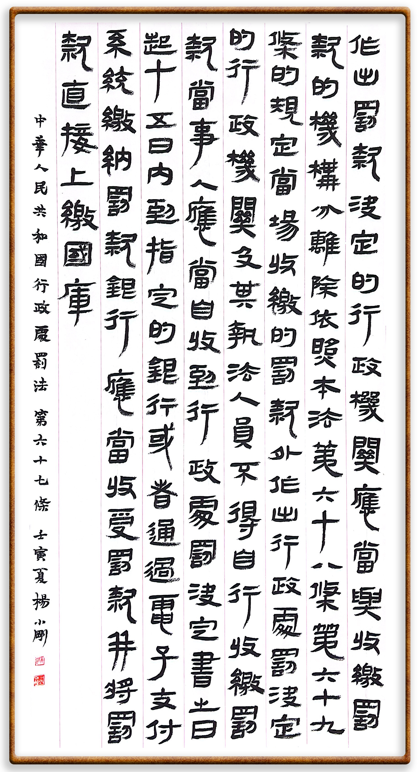 繼《中華人民共和國民法典》《中華人民共和國土地管理法》《中華人民共和國土地管理法實施條例》《中華人民共和國法律援助法》之后,法治日報社聯(lián)合北京市司法局、北京書法家協(xié)會,將筆端對準(zhǔn)《中華人民共和國憲法》和《中華人民共和國行政處罰法》。
