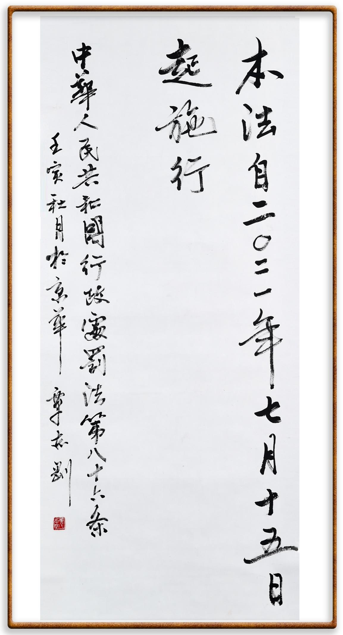 繼《中華人民共和國民法典》《中華人民共和國土地管理法》《中華人民共和國土地管理法實施條例》《中華人民共和國法律援助法》之后,法治日報社聯(lián)合北京市司法局、北京書法家協(xié)會,將筆端對準(zhǔn)《中華人民共和國憲法》和《中華人民共和國行政處罰法》。