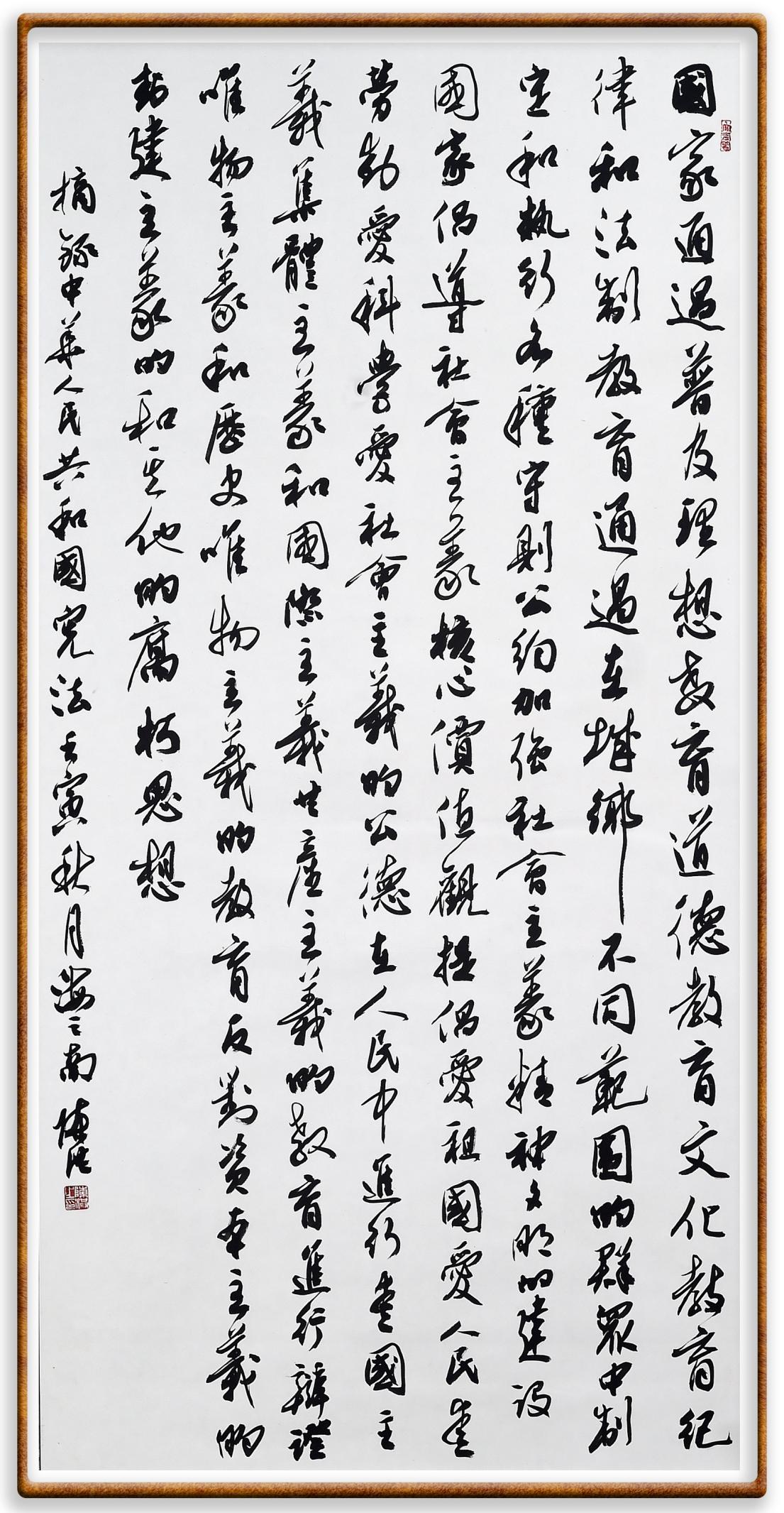 繼《中華人民共和國民法典》《中華人民共和國土地管理法》《中華人民共和國土地管理法實施條例》《中華人民共和國法律援助法》之后,法治日報社聯合北京市司法局、北京書法家協會,將筆端對準《中華人民共和國憲法》和《中華人民共和國行政處罰法》。