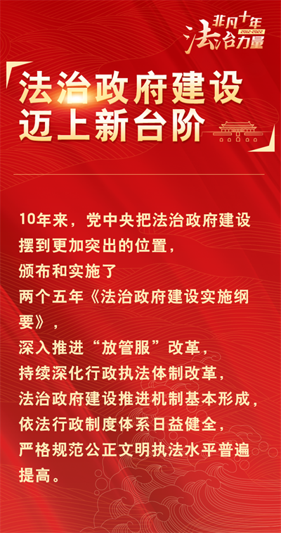 法治網精心策劃制作十期海報,帶您一起領略非凡十年的法治力量!今天為您奉上第五期“法治政府建設邁上新臺階”。