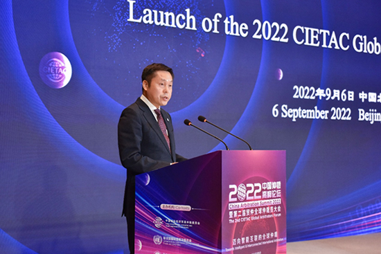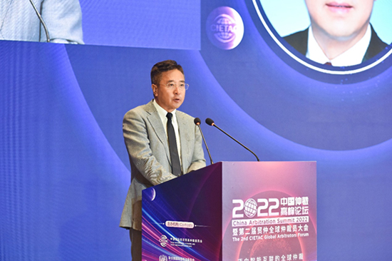 (貿(mào)仲副主任兼秘書(shū)長(zhǎng)王承杰主持《2022貿(mào)仲全球仲裁員倡議》發(fā)布儀式)