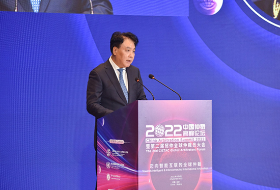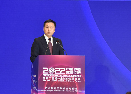 (貿仲副主任兼秘書長王承杰主持《2022貿仲全球仲裁員倡議》發(fā)布儀式)