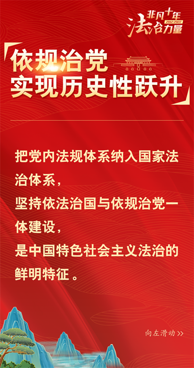 法治網(wǎng)精心策劃制作十期海報(bào),帶您一起領(lǐng)略非凡十年的法治力量!今天為您奉上第九期“依規(guī)治黨實(shí)現(xiàn)歷史性躍升”。